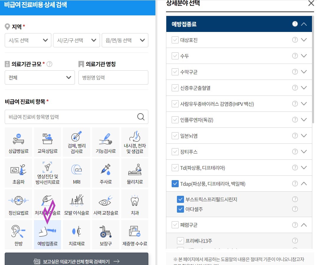 성인 비급여 예방접종 진료비용 알아보기