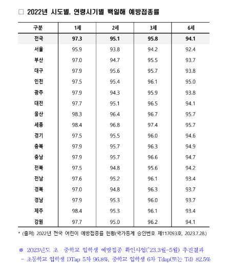 [백일해 예방접종 현황]