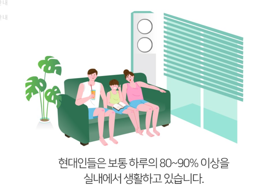 현대인은 하루 중 거의 90%를 실내에서 생활하고 있습니다.