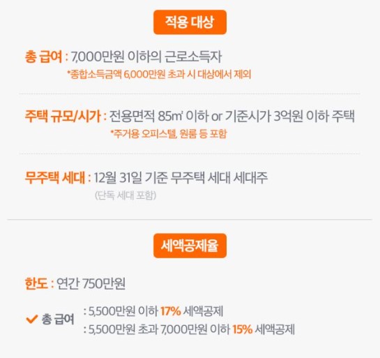 전체 급여 7천만 원 또는 종합소득 금액 6천만 원 이하인 근로자입니다.