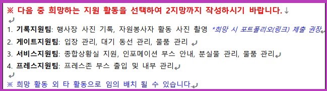 2 지망까지 희망하는 지원 활동을 선택하면 됩니다.